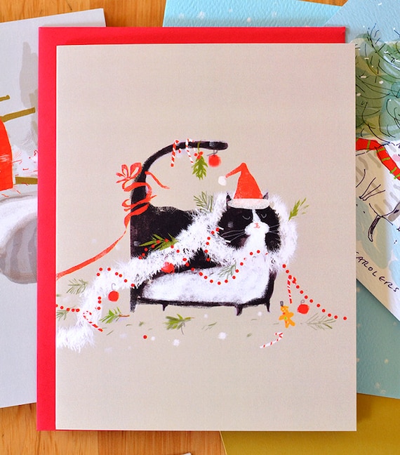 Funny Christmas Card Merry Mess Funny Christmas Cat Card Etsy
