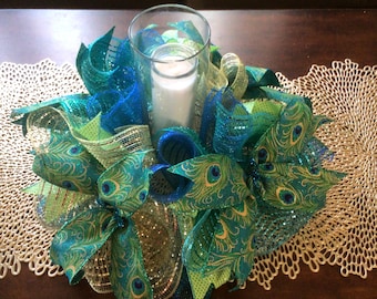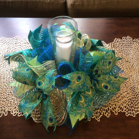 Peacock Centerpiecepeacock Candle Ringpeacock Candle Etsy