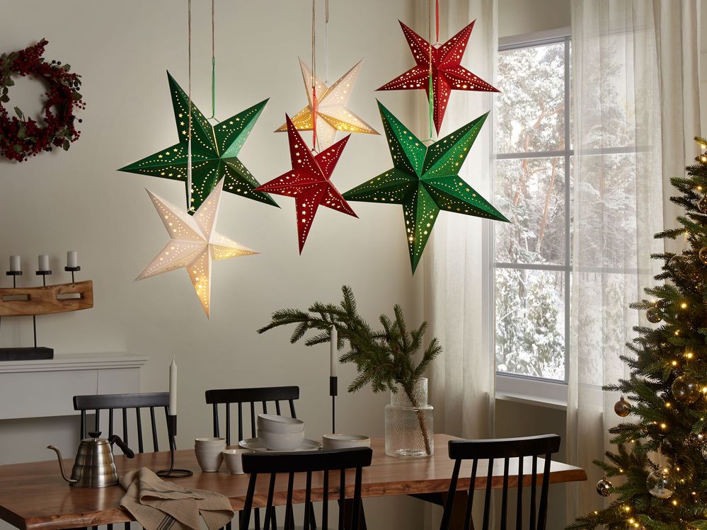 Set of 2 LED Hanging Glitter Stars 45 cm Red MOTTI Beliani.de