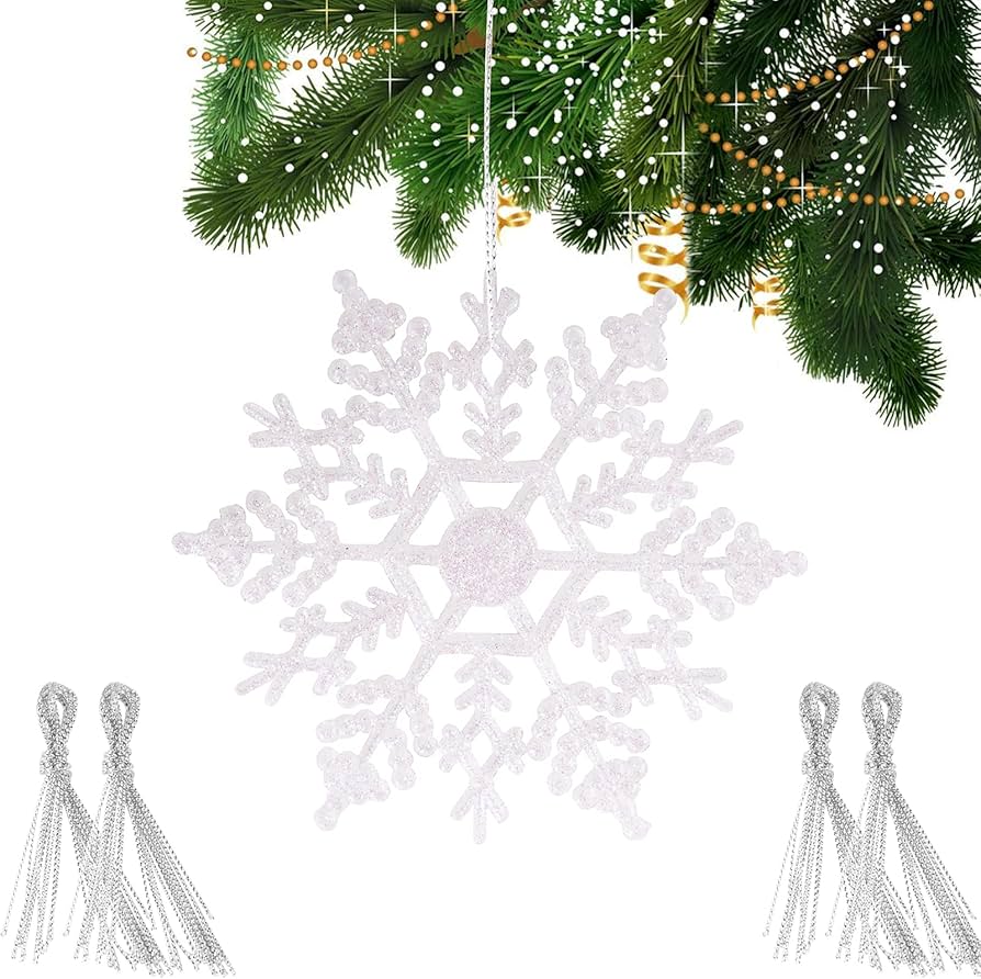Amazon.de: 24 Stück Weihnachten Schneeflocken Anhänger Glitzer